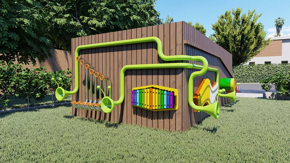 Kids Music Park Play Жабдуулукту орнотуу дубал тоосундагы музыкалык аспаптар - бул оюн-зоок шаймандары - бул адамдарга бир четинен сүйлөөгө мүмкүнчүлүк берет жана экинчи четинен угууга мүмкүнчүлүк берет. Бул сүйлөө түтүкчөсү - бул ар кандай бийиктиктеги эки сүйкүмдүү бурчтары бар, аны ар кандай курактагы балдар үчүн биргелешип ойноого ыңгайлуу кылуу. Ошол эле учурда, аба-ырайы туруктуу материал көптөн кийин ачык колдонуу убактысы бар жана аны орнотуу жана аны орнотуу оңой, аны идеалдуу суу менен борбору, курорттук жана башка балдардын сырткы же ички пьесалары.