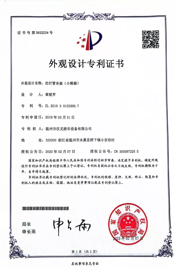 Ханк шаарынын акыркы продуктусу, Панда перкуссия аспапын калыптандырды. Бул сырткы тема парктарына, бала бакча, башталгыч мектептер, темир мектептер, темир ресторандары жана башка жерлерге сүйкүмдүү дизайнына байланыштуу. Ар кандай түстөгү алюминийдин он бир түтүкчөсүнөн жасалган Маримба, балдардын көңүл ачууну сезүү үчүн, балдардын көңүл ачуу сезимин жеңилдетет