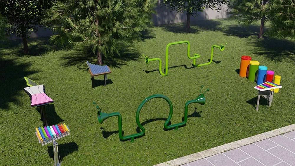 Ачык музыкалык оюн аянтчасынын жабдуулары Радуга баскычтопун имараттарда, мектептин аянтчаларында, мектеп аянтчалары же бала бакчалары же бала бакчада колдонсо болот. Башка ачык перкуссия шаймандары дагы айкалыштырылышы мүмкүн.
