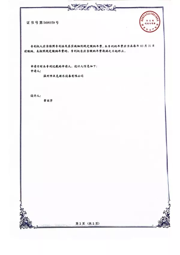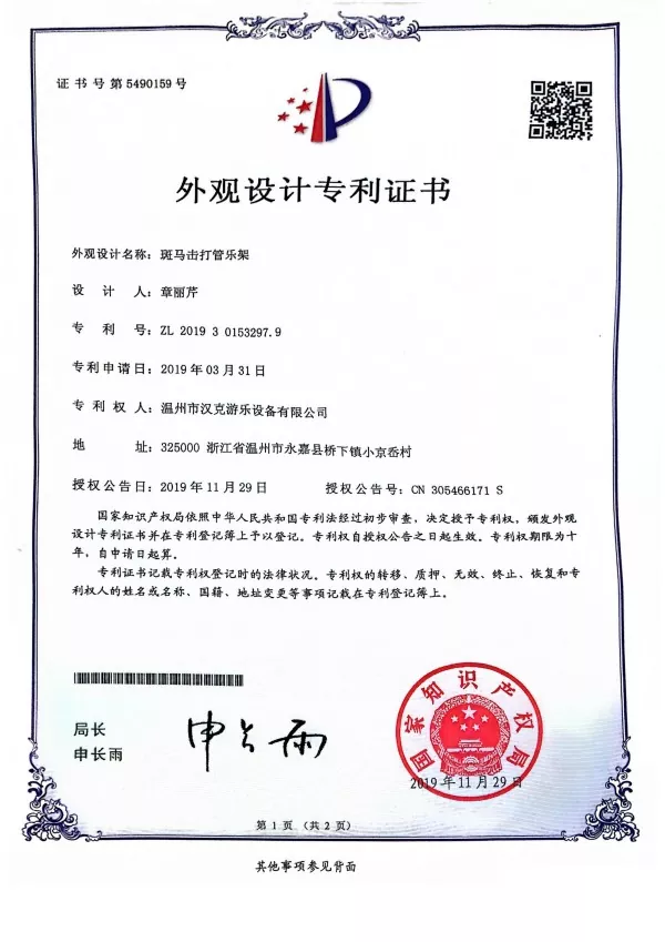 Ошол эле учурда, Ханк Роттун өнүмү катары, биз дизайн сертификатка зебранын формасына каршы патенттик сертификатка кайрылган, 2019-жылы Кытай Интеллектуалдык менчик объектисинин бекитүүсүнөн өттү.